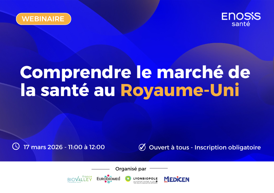 Entre opportunités d’innovation, spécificités du NHS et évolutions réglementaires post-Brexit, comprendre ses codes est essentiel pour réussir son développement. Ce webinaire Enosis Santé vous donnera les clés concrètes pour appréhender l’accès au marché, le cadre réglementaire et les enjeux de remboursement au UK.